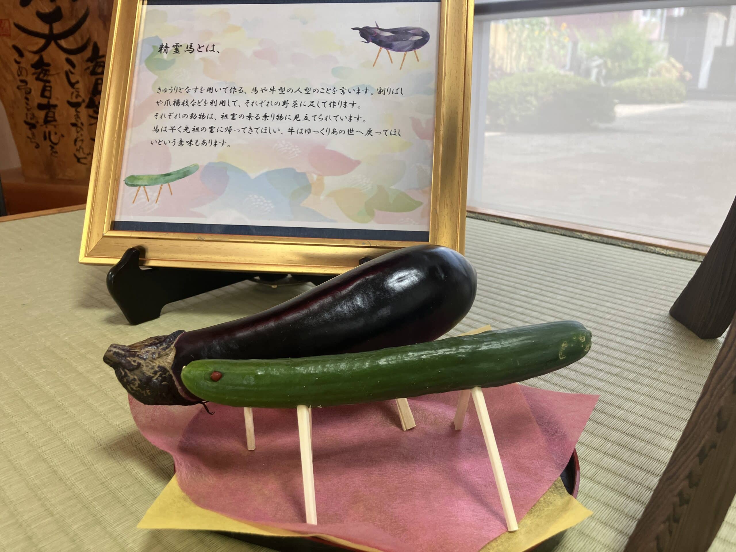 さて、お盆ですね。施設玄関に精霊馬を飾っています。私も亡くなった大切な人を思い浮かべながら、元気で頑張っているよと報告したいと思います
